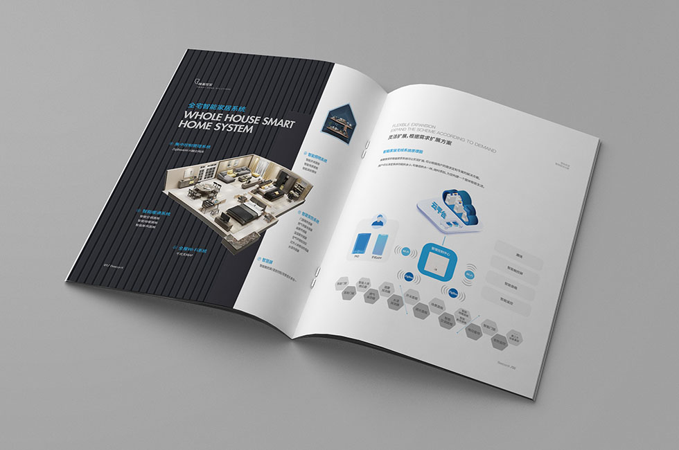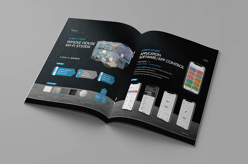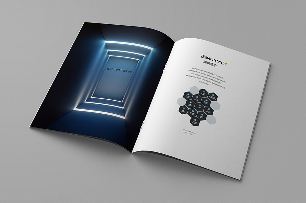 項目背景:蜂巢智家(BeeconX)智能家居系統(tǒng)是一個綜合性系統(tǒng),覆蓋照明、暖通、安防、影音娛樂、全屋Wi-Fi等日常各種功能需求,為客戶提供多業(yè)務(wù)融合解決方案,精簡的組網(wǎng)架構(gòu),家庭無需重復(fù)布線,多網(wǎng)合一,實現(xiàn)智能照明、智能控制、智能家電等設(shè)備的互聯(lián)互通。艾的爾承接其畫冊設(shè)計制作,成立品牌設(shè)計小組,與企業(yè)進(jìn)行深入溝通,明確企業(yè)對于畫冊設(shè)計的需求,封面整體色采用黑色,寓意高端、科技、智能。
