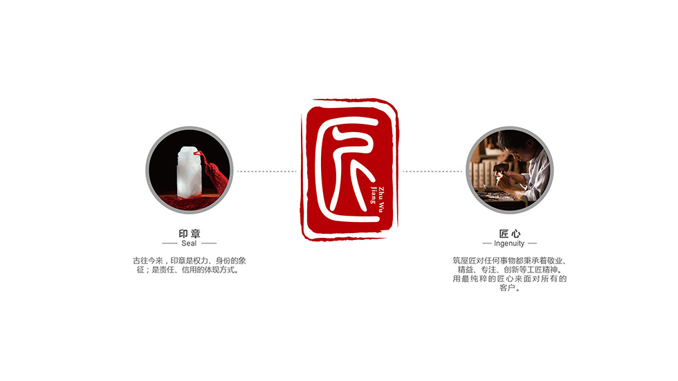 項(xiàng)目背景: 武漢半島筑屋科技有限公司于2005年8月成立,注冊資本800萬元;是大型裝備制造企業(yè)半島重工旗下,聚焦“中國鄉(xiāng)村自建房”領(lǐng)域,以“匠造美好生活”為使命,以受孕于“工匠精神”的“筑屋匠”為品牌,以設(shè)計(jì)為驅(qū)動力的鄉(xiāng)村綜合住宅生活公司。公司坐落在武漢東湖高新技術(shù)開發(fā)區(qū),占地近50000平方,建筑面積近60000平方。艾的爾設(shè)計(jì)承接其品牌VI設(shè)計(jì),成立品牌VI設(shè)計(jì)小組7人:品牌總監(jiān)1名、設(shè)計(jì)總監(jiān)1名、資深設(shè)計(jì)師4名、文案策劃1名。了解品牌的本質(zhì)需求、商業(yè)目的、目標(biāo)消費(fèi)群體審美偏好、行業(yè)與品類特性及品牌文化。設(shè)計(jì)師采用印章和匠心元素的結(jié)合,印章是權(quán)力、身份的象征,是責(zé)任、信用的體現(xiàn)方式;匠心代表筑屋匠對任何事物都秉承著敬業(yè)、精益、專注、創(chuàng)新等工匠精神,用最純粹的匠心來面對所有客戶。設(shè)計(jì)小組反復(fù)修改,最后完成從概念到形象生動的塑造呈現(xiàn),項(xiàng)目在有效時間內(nèi)獲得了客戶驗(yàn)收。