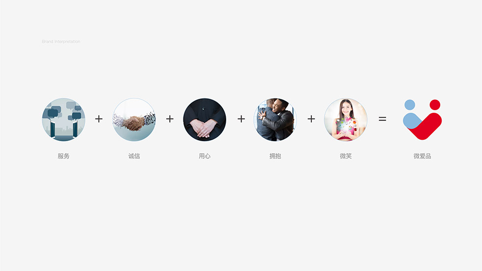 項目背景:武漢都信網(wǎng)絡科技有限公司成立于2020年,是一家以自主研發(fā)和運營為基礎的集線上購物、服務于一體的綜合類電子商務平臺。公司的運營平臺“微愛品”以商城為載體,附加求職、二手車、婚戀等生活類增值服務內(nèi)容,最終將打造一個以誠信為基礎的網(wǎng)絡生態(tài)鏈。艾的爾設計承接其品牌LOGO設計,成立品牌設計小組,經(jīng)過深入溝通后,了解微愛品企業(yè)需求,設計師以服務、誠信、用心、擁抱、微笑為載體呈現(xiàn)LOGO設計。色彩運用藍色、紅色搭配,藍色象征服務行業(yè),紅色象征誠信、熱情,將“打造一個以誠信為基礎的網(wǎng)絡生態(tài)鏈”理念呈現(xiàn)出來。