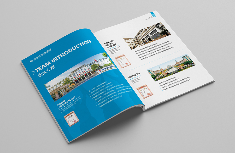 項(xiàng)目背景:中冶武勘堅(jiān)持“冶金勘察國家隊(duì),資源保障主力軍,基本建設(shè)排頭兵,巖土工程、智慧應(yīng)用、資源勘查領(lǐng)域具有特色的工程綜合服務(wù)提供商”戰(zhàn)略定位,依托測繪、勘察、檢測監(jiān)測、巖土工程等傳統(tǒng)主業(yè)核心基礎(chǔ)支撐,積極打造工程總承包、智慧應(yīng)用、能源環(huán)保、資源開發(fā)四大業(yè)務(wù)板塊,構(gòu)建傳統(tǒng)主業(yè)及資源勘查與礦山建設(shè)、智慧應(yīng)用、地下空間開發(fā)、巖土工程一體化、新能源工程、生態(tài)環(huán)境治理、特色基礎(chǔ)設(shè)施建設(shè)八個業(yè)務(wù)方向,為客戶提供集規(guī)劃、投資、建設(shè)、運(yùn)維為一體的工程全生命周期服務(wù)。艾的爾設(shè)計(jì)接受其委托,承接畫冊設(shè)計(jì)項(xiàng)目。在畫冊設(shè)計(jì)、創(chuàng)意的過程中,設(shè)計(jì)師通過對行業(yè)屬性進(jìn)行深入地了解,根據(jù)企業(yè)屬性,進(jìn)行了畫冊設(shè)計(jì)、創(chuàng)意。在畫冊封面設(shè)計(jì)中,選用具有深地儲氫系統(tǒng)代表性且現(xiàn)代感、企業(yè)化的圖片組合成‘H’和‘M’,‘H’代表氫能源,則右側(cè)設(shè)計(jì)感的‘M’代表MCC,對字母組合進(jìn)行藝術(shù)化設(shè)計(jì),使得整個封面具有嚴(yán)謹(jǐn)、穩(wěn)重的風(fēng)格,大膽留白凸顯字母‘H’和‘M’,展現(xiàn)了企業(yè)的經(jīng)營業(yè)務(wù)和追求科技以及嚴(yán)謹(jǐn)負(fù)責(zé)的工作態(tài)度。封面字體設(shè)計(jì)干凈利落,藍(lán)色代表理性科技,契合企業(yè)形象。在內(nèi)頁的設(shè)計(jì)中,按黃金分割比例設(shè)計(jì),標(biāo)題與文字的板塊相互呼應(yīng)文圖分布疏密有致,整個版面簡潔優(yōu)雅。畫冊內(nèi)頁的顏色選用上,和封面相互呼應(yīng),以藍(lán)白等清新雅致的顏色為主。整個畫冊,設(shè)計(jì)精簡、嚴(yán)格,充分展現(xiàn)出了企業(yè)的訴求和形象。