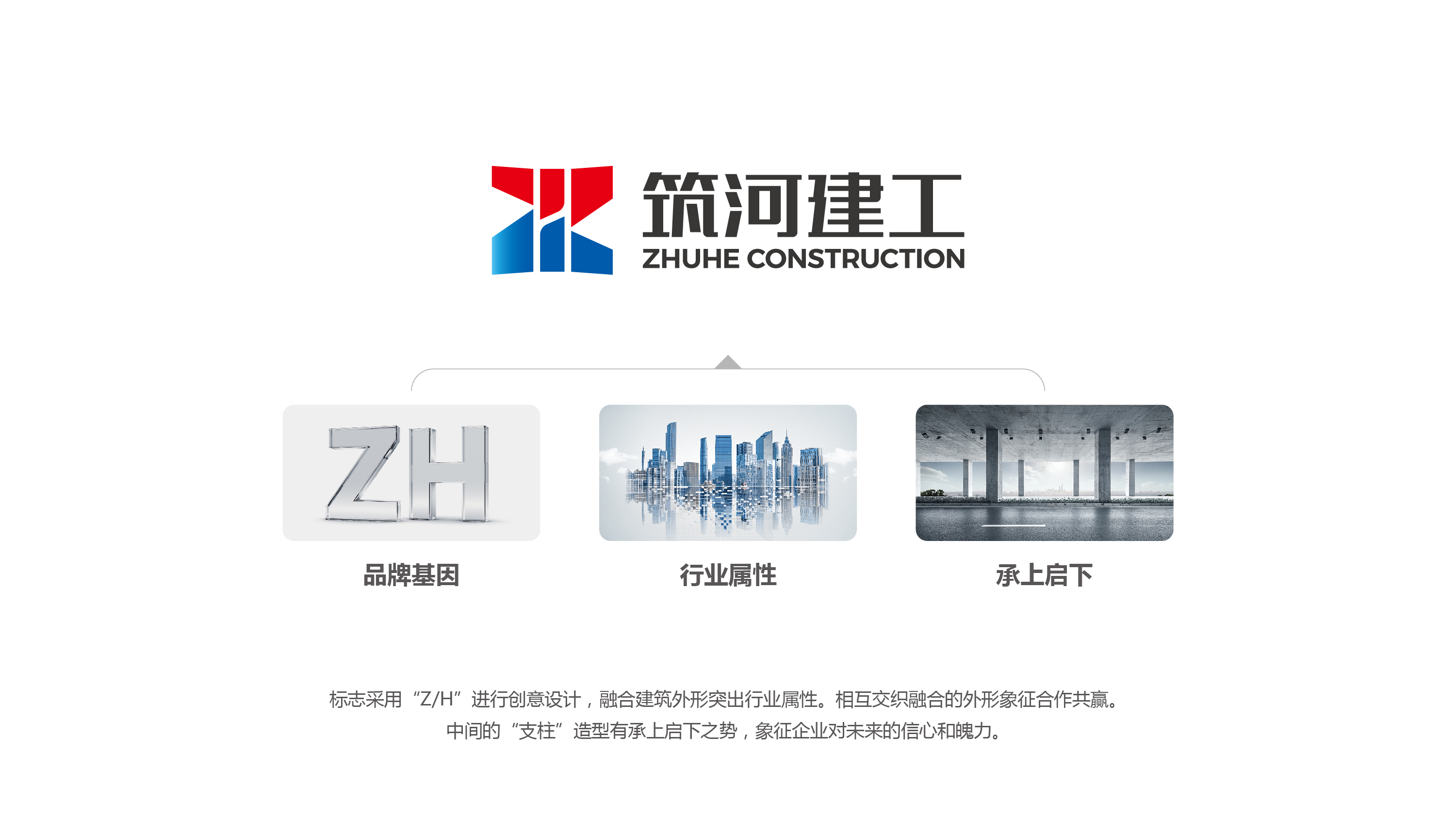 項(xiàng)目背景:筑河建工作為黃岡建筑產(chǎn)業(yè)轉(zhuǎn)型發(fā)展的試驗(yàn)田,是一家具有發(fā)展前景、充滿(mǎn)年輕活力的企業(yè),也是黃岡、團(tuán)風(fēng)合力打造的一張建筑業(yè)“新名片”。筑河建工具有起點(diǎn)高、基礎(chǔ)實(shí)、潛力大的特點(diǎn)及優(yōu)勢(shì)。在行業(yè)發(fā)展的洪流中,公司不斷尋求新的機(jī)遇、持續(xù)提升綜合實(shí)力,積極推動(dòng)綠色建造、智慧建造、精益建造,建設(shè)高品質(zhì)、示范型精品工程,服務(wù)經(jīng)濟(jì)社會(huì)發(fā)展,向著打造一流企業(yè)的目標(biāo)邁進(jìn)。艾的爾團(tuán)隊(duì)承接該項(xiàng)目,由品牌總監(jiān)牽頭,主動(dòng)與筑河建工對(duì)接,成立品牌VI設(shè)計(jì)小組,經(jīng)過(guò)多次對(duì)接溝通,設(shè)計(jì)小組反復(fù)修改,最后完成從概念到形象生動(dòng)的塑造呈現(xiàn)。筑河建工標(biāo)志logo采用“Z/H”進(jìn)行創(chuàng)意設(shè)計(jì),融合建筑外形突出行業(yè)屬性。相互交織融合的外形象征合作共贏。中間的“支柱”造型有承上啟下之勢(shì),象征企業(yè)對(duì)未來(lái)的信心和魄力。